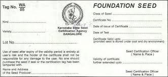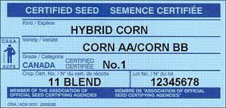 Each class of certified seed is associated with a colored seed tag. Certified seed tags are blue, registered are purple, and foundation tags are white. Information provided on the certification tag includes a class of certification, kind of crop, variety, lot number, and name and address of the owner. The certification class is stated and color