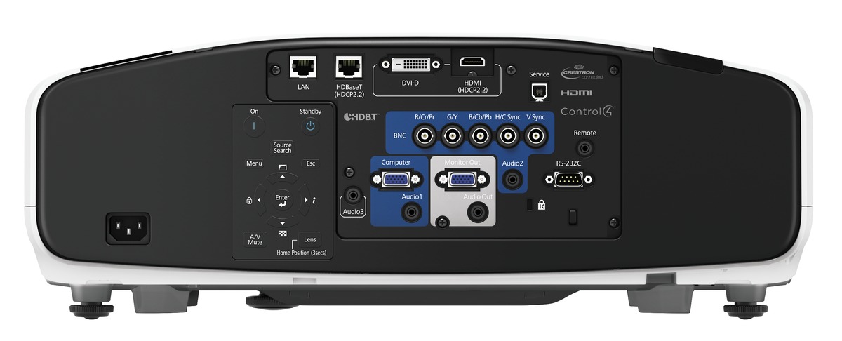 The EB-G7100 projector is compatible with a wide range of external devices, and additional ports now include DVI-D, HDMI and HDBaseT. Ideal for large venues, HDBaseT can transmit Full HD video, audio and Ethernet at low cost through cat 5e/6 cables up to 100 metres.